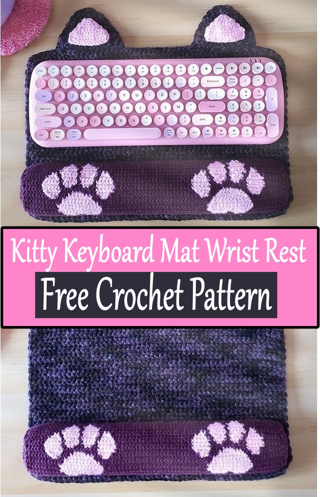 The Kitty Keyboard Mat wristrest is a charming and practical accessory for any desk. It typically features a flat mat section, where you rest your keyboard, and an elevated part for the wrist rest, resembling a plump kitty lounging on your desk. The Kitty Keyboard Mat Wrist Rest, often crocheted with soft yet sturdy yarn, provides optimal support for your wrists, helping you to maintain a proper posture. This can reduce the risk of developing strain injuries resulting from prolonged typing or gaming periods. Its roomy size accommodates a full-sized keyboard with enough space for a mouse.