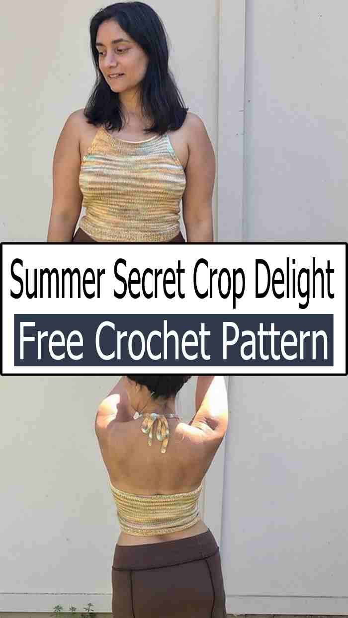 The Summer Secret Crop Delight is a charming and airy top perfect for warm weather. Made from fingering-weight yarn, this crop top provides a lightweight and comfortable fit. The knitting process, which starts from the bottom up and incorporates knitting in the round, is a breeze even for beginners. Simple decreasing techniques shape the top, making it an excellent project for knitters looking to expand their skills.  The elegant design ensures it complements any summer wardrobe.