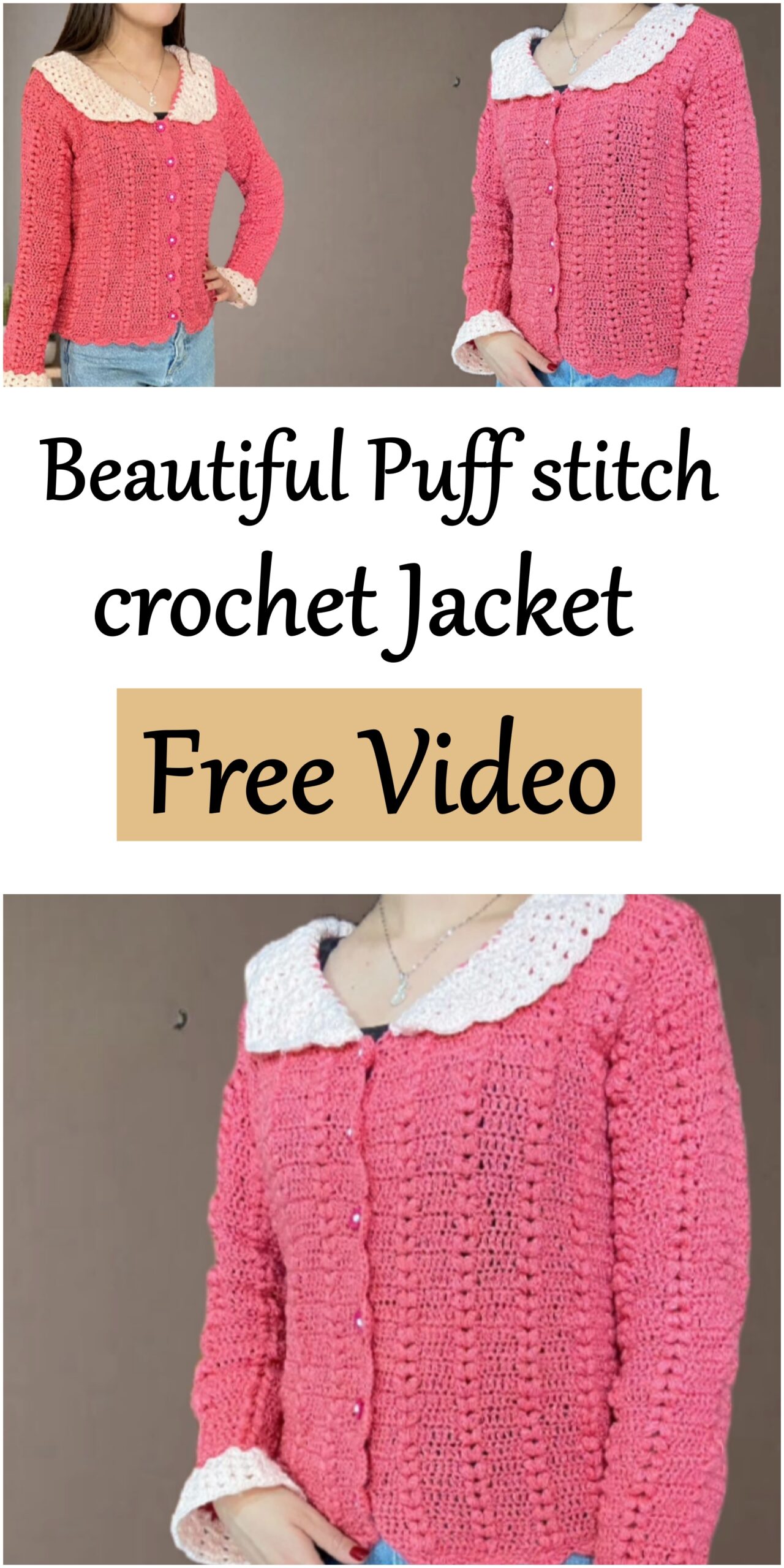 A beautiful puff stitch crochet jacket is a lovely and warm piece that adds style to any outfit. This jacket uses a special puff stitch that makes the fabric soft and textured, giving it a unique and eye-catching look. It is perfect for cool days when a light jacket is needed. The design is simple enough for beginners who want to learn new crochet techniques while making something useful and pretty.