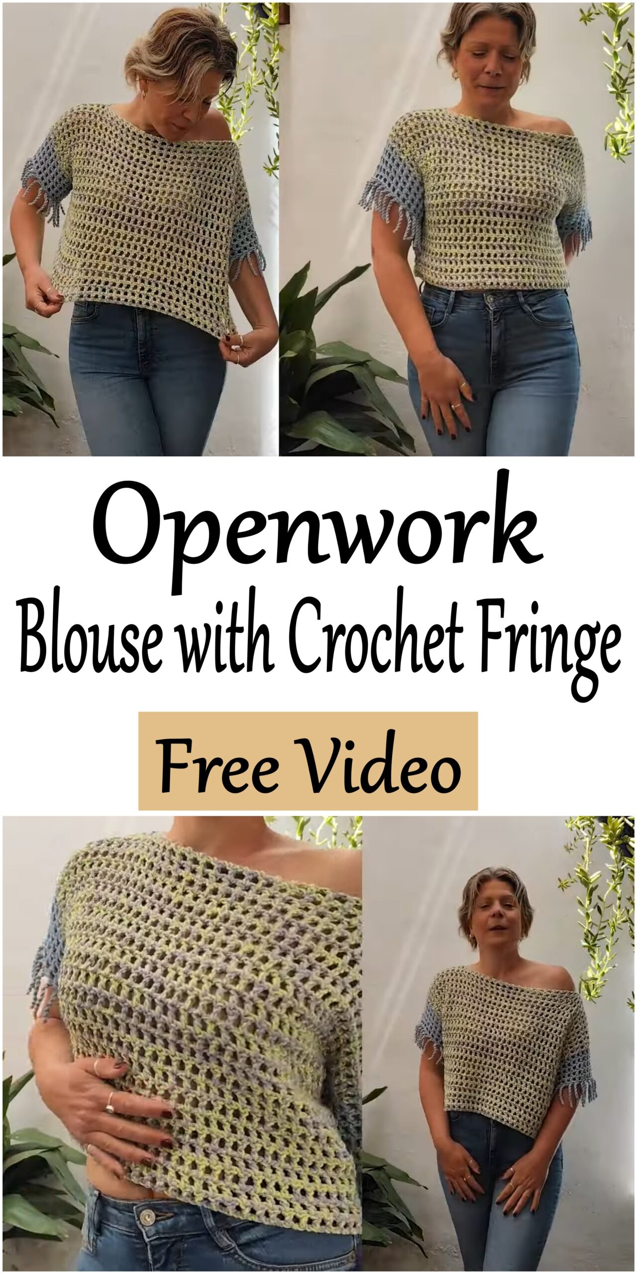 Openwork Blouse with Crochet Fringe is a beautiful and light blouse that adds a unique touch to any outfit. This blouse features open patterns that make it airy and comfortable to wear, while the crochet fringe at the edges gives it a soft, handmade look. It is perfect for warm days and can be worn casually or dressed up for special occasions.