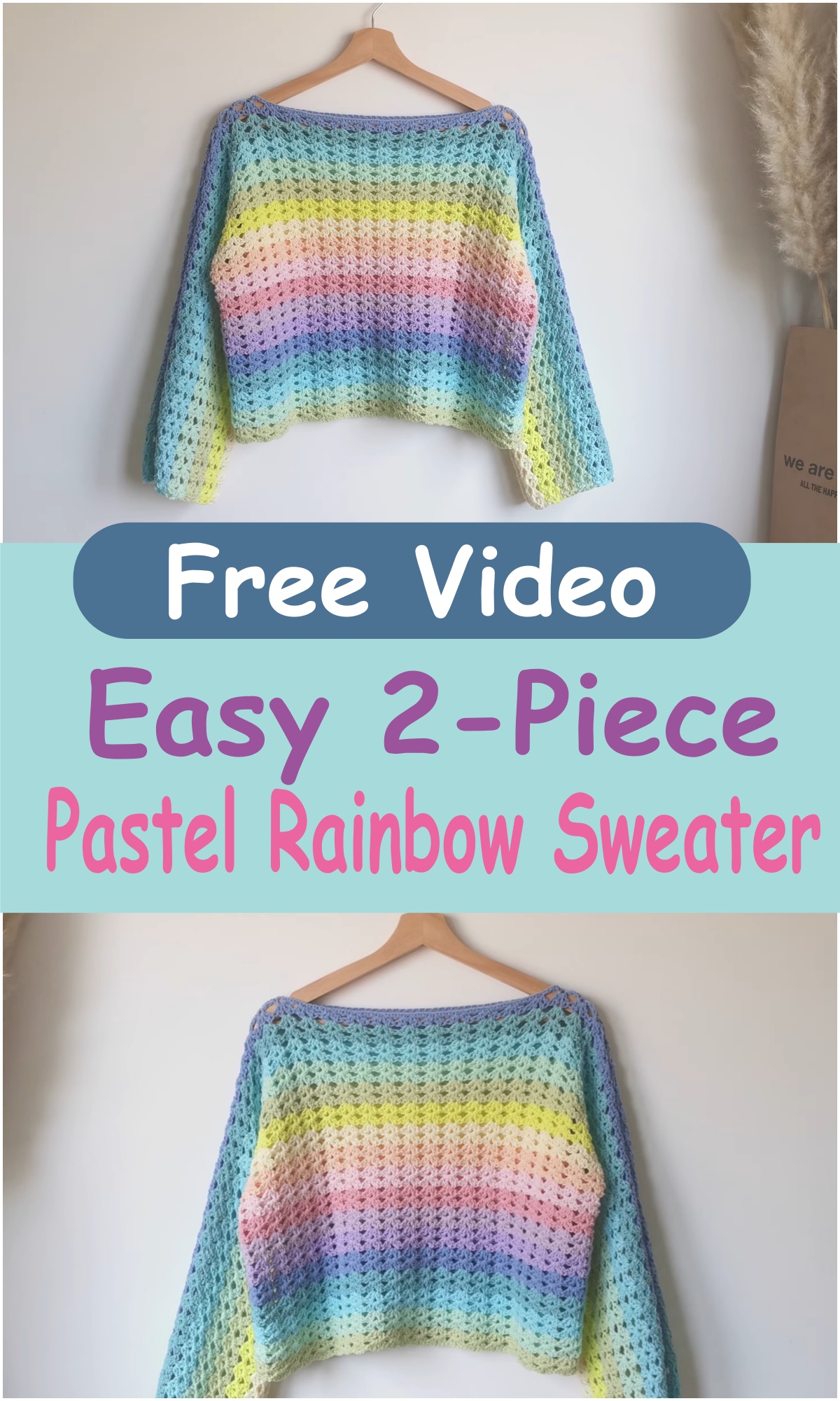 The Easy 2‑Piece Pastel Rainbow Sweater is a soft, colorful top made in gentle pastel stripes that feels cozy and bright. It is simple to make using basic stitches, perfect for anyone who wants a pretty sweater without a lot of hard steps.