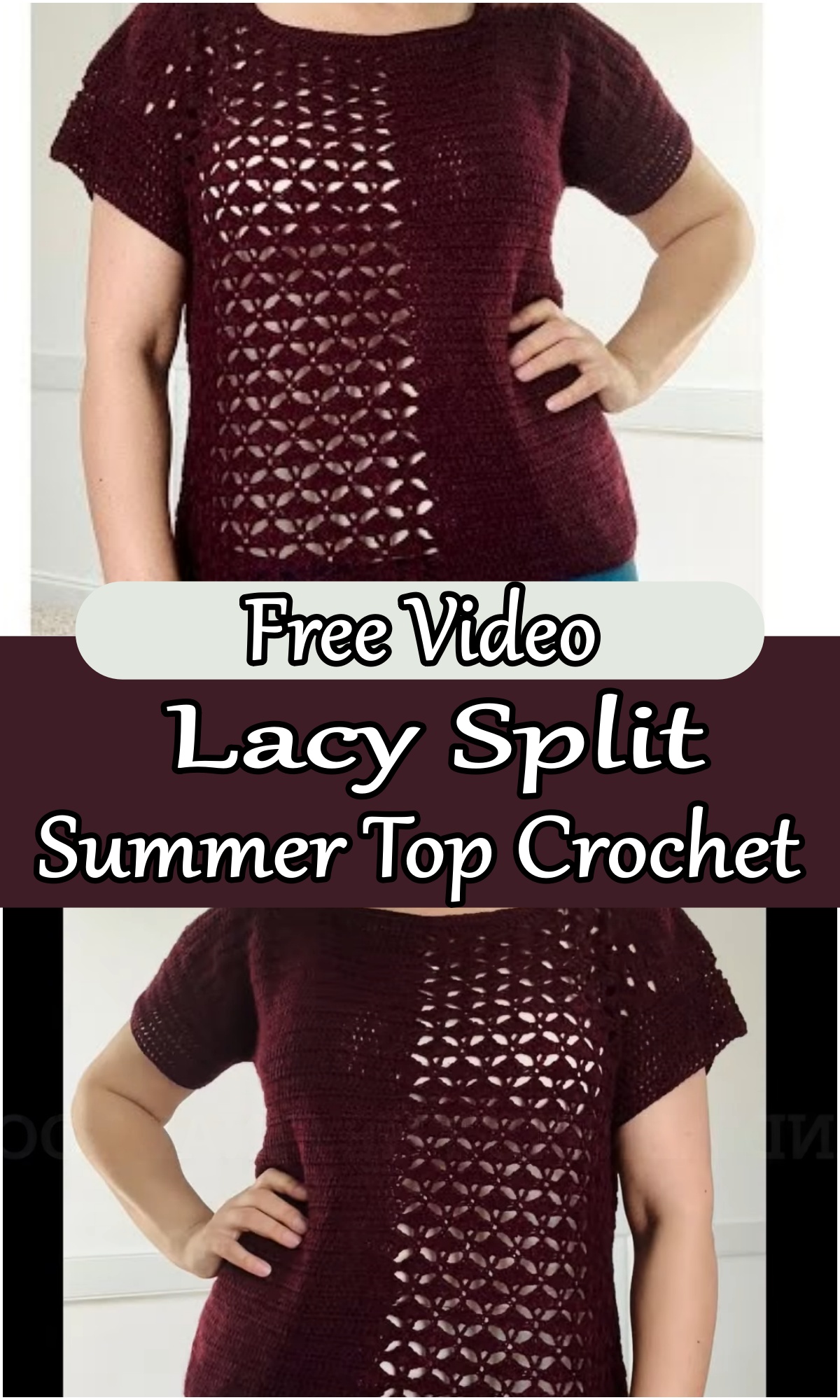 The Lacy Split Summer Top is made by working two rectangle pieces and joining them at the shoulders and sides, leaving the front split open for a stylish look. The pattern uses simple, repeating stitch rows that give it a neat and airy feel. The neckline and sleeves are shaped with soft curves, and the bottom edge hangs loosely for comfort and flow. It is worked in flat panels and finished with clean joining and light edging.