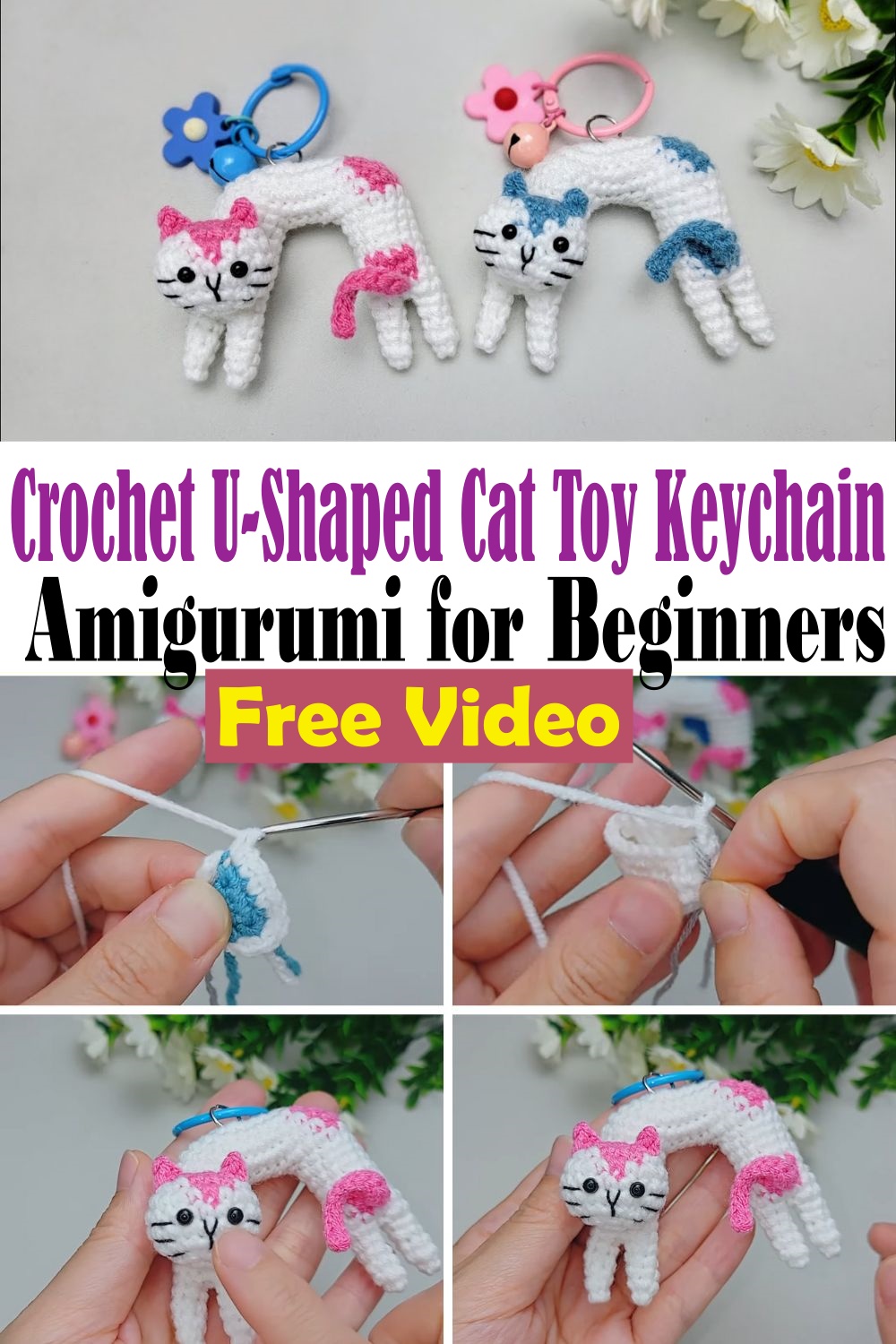 Free Crochet U-Shaped Cat Toy Keychain Tutorial Cute Amigurumi for Beginners