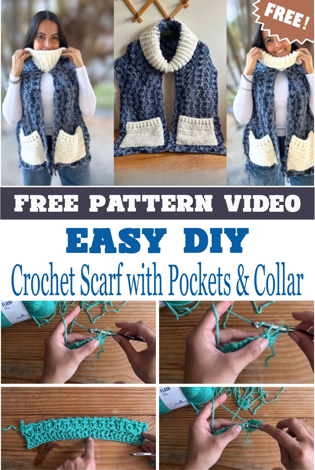 Easy Diy Crochet Scarf with Pockets & Collar Free Pattern