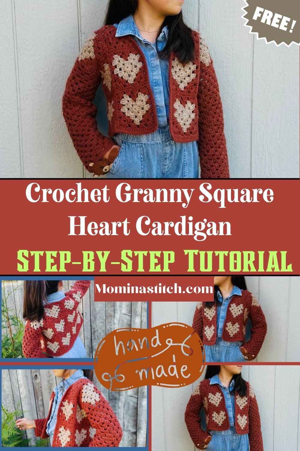 Crochet Granny Square Heart Cardigan Step-by-Step Tutorial in All Sizes