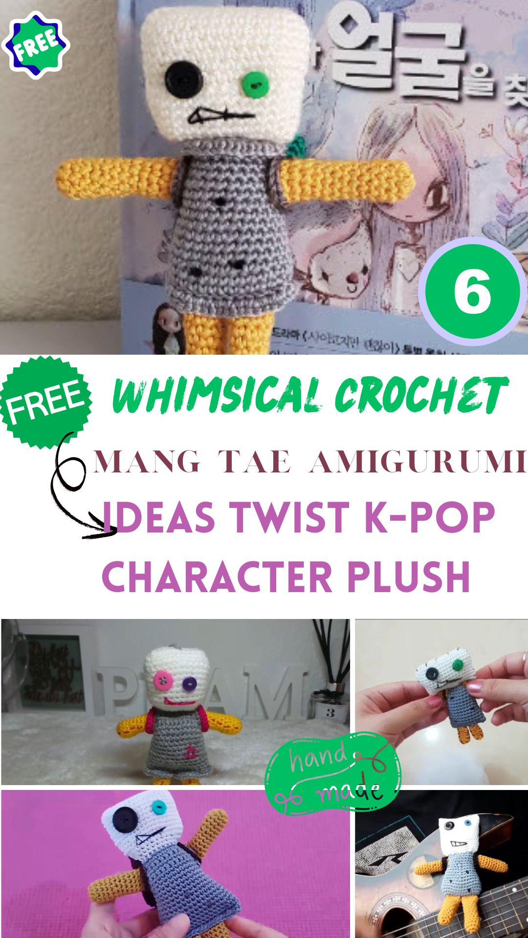 This pattern celebrates the handmade charm of traditional amigurumi. With soft yarn and a cuddly shape, it creates a plush that’s both decorative and huggable. The instructions are simple, allowing beginners to enjoy the process while producing a polished, adorable result. Whether you use it as a bed-side plush or as part of your K-Pop collection, this Mang Tae plush exudes warmth and happiness a true crochet classic with a whimsical twist.