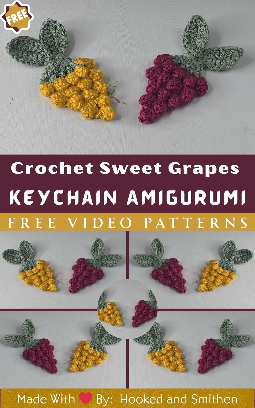 Crochet Sweet Grapes Keychain Amigurumi Pattern Details
