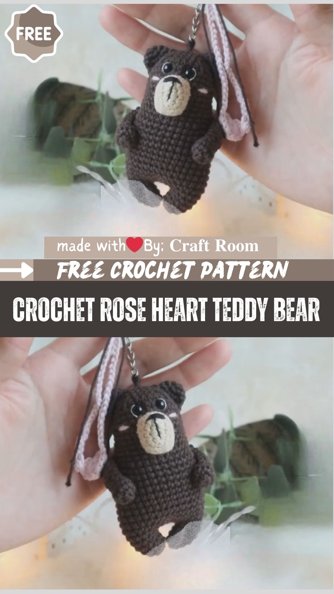 Crochet Rose Heart Teddy Bear Keychain Amigurumi Pattern