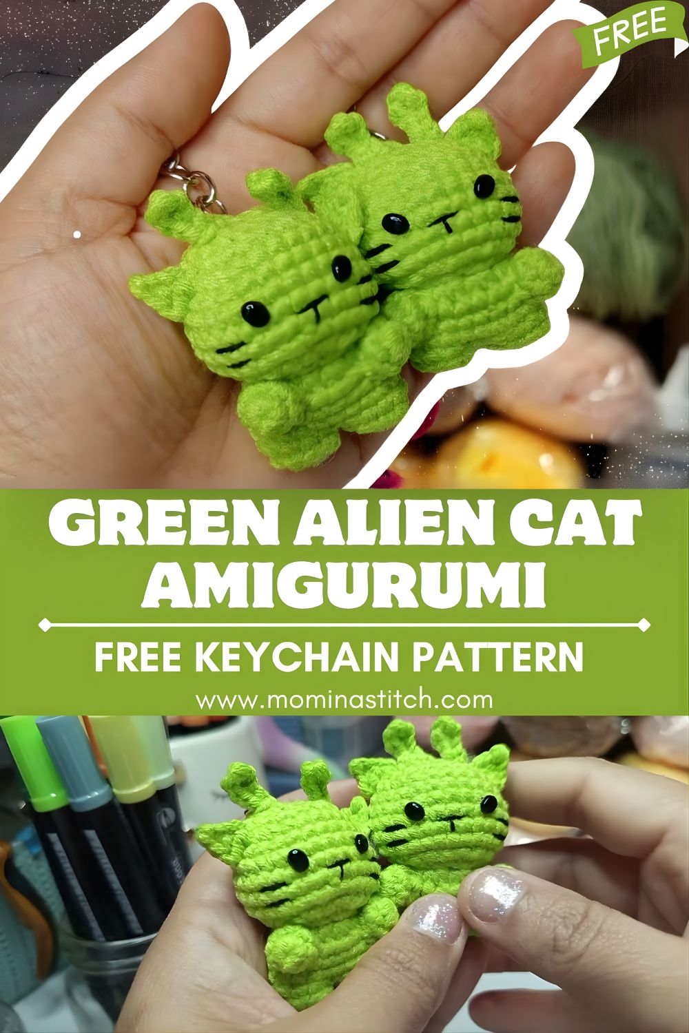 Crochet Green Alien Cat Amigurumi Keychain Pattern (Beginner Tutorial)