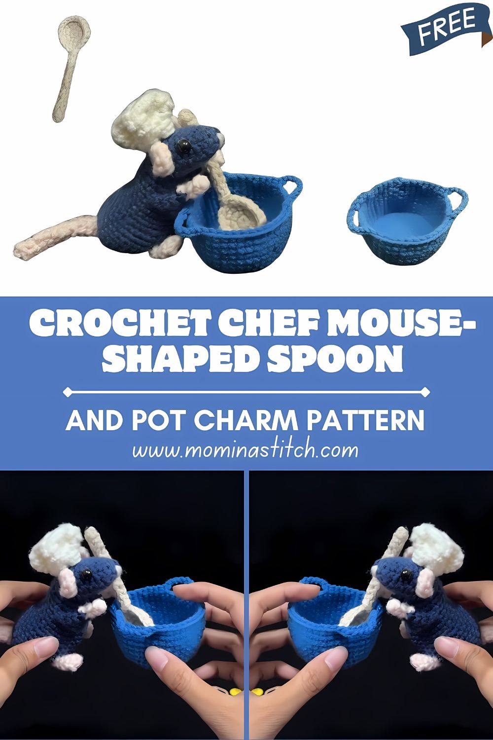 Crochet Chef Mouse-Shaped Spoon and Pot Charm Pattern