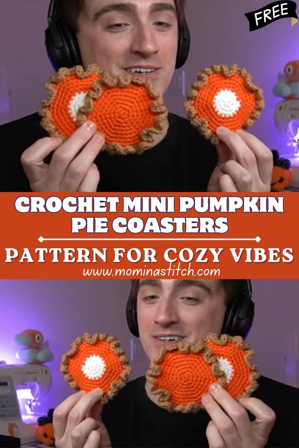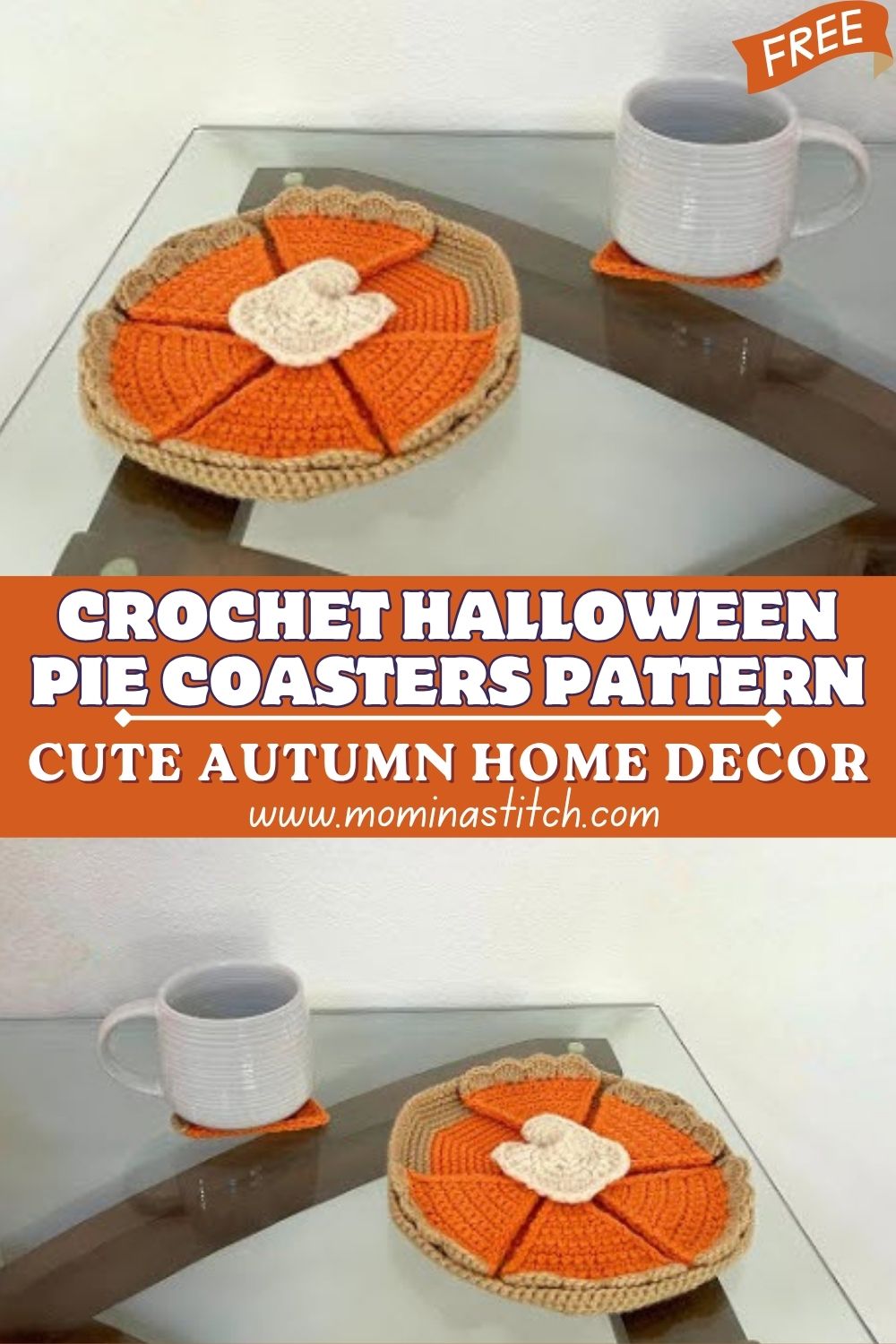 Stylish Crochet Halloween Pie Coasters Pattern Cute Autumn Home Decor