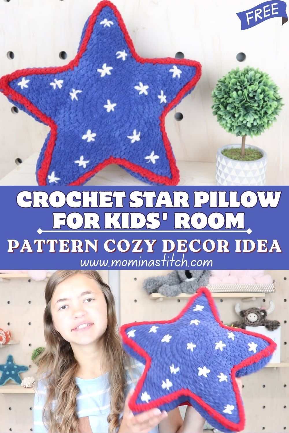 Awesome Crochet Star Pillow for Kids’ Room Pattern Cozy Decor Idea