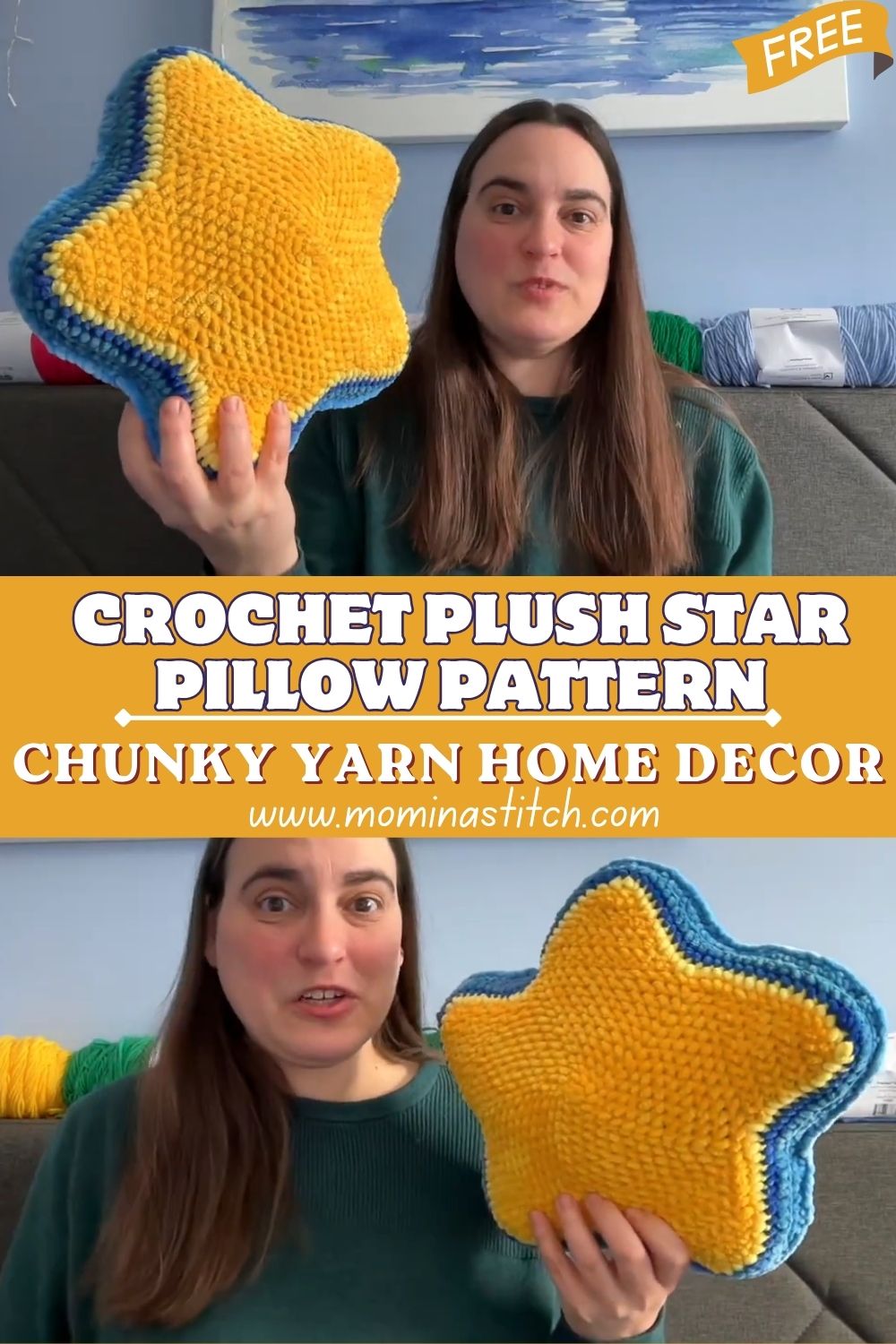 Crochet Star Pillow Plushie Patterns Chunky Yarn Cushion for Cozy Rooms